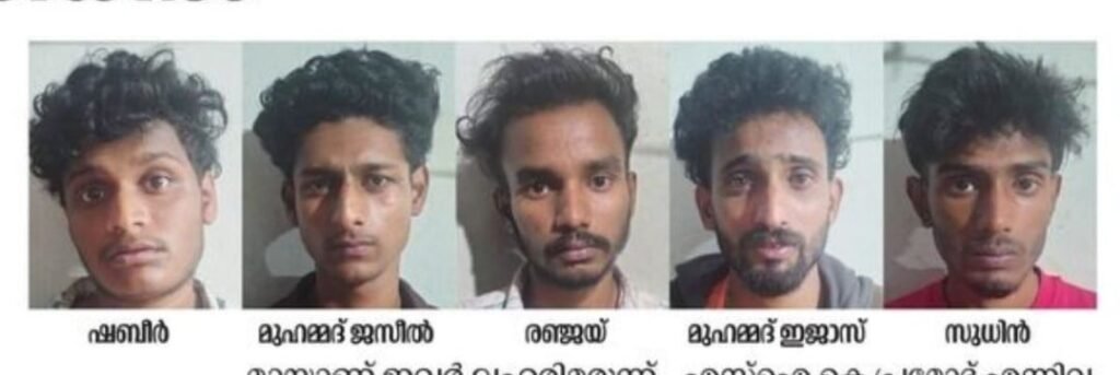 കോങ്ങാട് കവലങ്ങൽ കുന്നത്തു വീട്ടിൽ സുധിൻ (20), തിരുനെല്ലായി മൊഴിപുലം പുഴയ്ക്കൽ വീട്ടിൽ രഞ്ജയ് (21), മേപ്പറമ്പ് പേരാഞ്ചേരി വീട്ടിൽ ഷബീർ (19), പള്ളിപ്പുറം വെള്ളായങ്ങൽ വീട്ടിൽ മുഹമ്മദ് ജസീൽ (20), മലമ്പുഴ മന്തക്കാട് മുഹമ്മദ് ഇജാസ് (26) എന്നിവരാണ് അറസ്റ്റിലായത്. പിടിയിലായവരെല്ലാം പാലക്കാടും സമീപ പ്രദേശങ്ങളിലുമുള്ളവരാണ്.