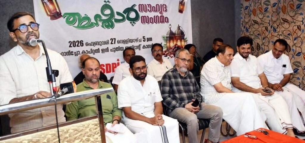 എസ്.ഡി.പി.ഐ കാസർകോട് ജില്ലാ കമ്മിറ്റി കാപ്പിറ്റൽ ഇൻ റെസ്റ്റോറന്റ് ൽ സംഘടിപ്പിച്ച ഇഫ്താർ സൗഹൃദ സംഗമം ഉദ്ഘാടനം ചെയ്ത് സംസാരിക്കുകയായിരുന്നു അദ്ദേഹം. ജില്ലാ പ്രസിഡണ്ട് സി.എസ് സവാദ് അധ്യക്ഷത വഹിച്ചു. ജില്ലാ ജനറൽ സെക്രട്ടറി ഖാദർ അറഫ സ്വാഗതം പറഞ്ഞു.